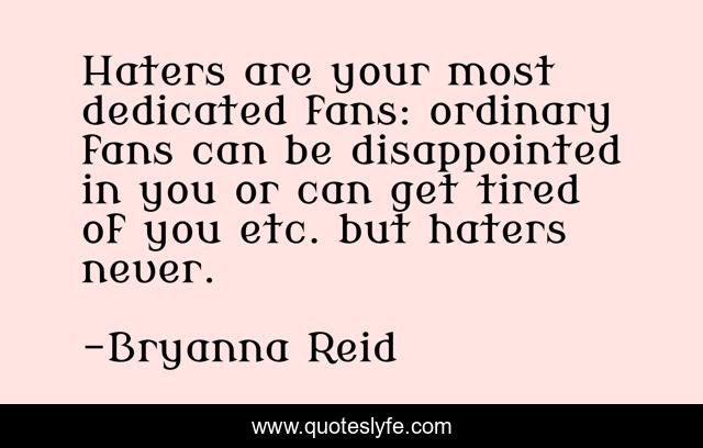 This page presents the quote "Haters are your most dedicated fans: ordinary fans can be disappointed in you or can get tired of you etc. but haters never.". Author of this quote is Bryanna Reid. This quote is about fans, hate, fanaticism,.
