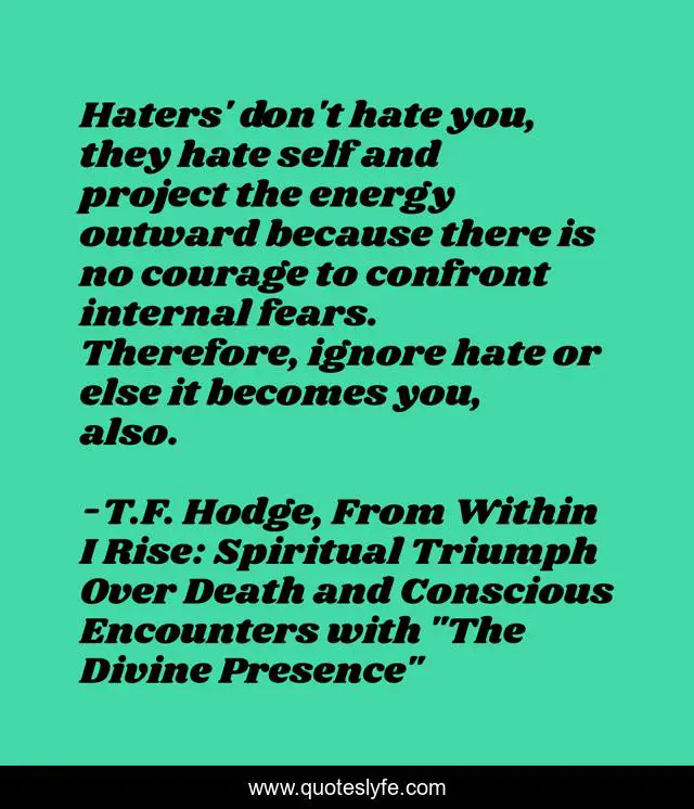 "T.F. Hodge, From Within I Rise: Spiritual Triumph Over Death and Conscious Encounters with "The Divine Presence" Quotes." Quoteslyfe.com, 2025. Fri. 05 Dec. 2025. <https://www.quoteslyfe.com/quote/Haters-don-t-hate-you-they-hate-211884>.