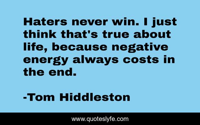 This page presents the quote "Haters never win. I just think that's true about life, because negative energy always costs in the end.". Author of this quote is Tom Hiddleston. This quote is about win, end, negative,.