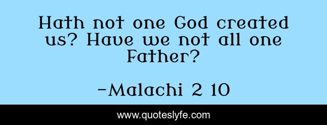 "Malachi 2 10 Quotes." Quoteslyfe.com, 2025. Fri. 05 Dec. 2025. <https://www.quoteslyfe.com/quote/Hath-not-one-God-created-us-Have-169569>.