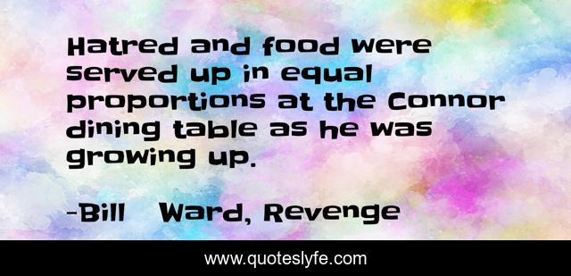 This page presents the quote "Hatred and food were served up in equal proportions at the Connor dining table as he was growing up.". Author of this quote is Bill Ward, Revenge. This quote is about hatred, revenge,.