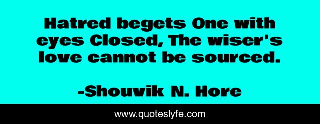 This page presents the quote "Hatred begets One with eyes Closed, The wiser's love cannot be sourced.". Author of this quote is Shouvik N.. .