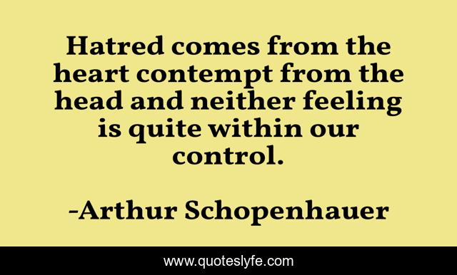 This page presents the quote "Hatred comes from the heart contempt from the head and neither feeling is quite within our control.". Author of this quote is Arthur Schopenhauer. .