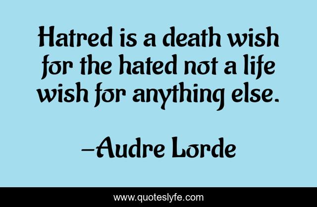 This page presents the quote "Hatred is a death wish for the hated not a life wish for anything else.". Author of this quote is Audre Lorde. .