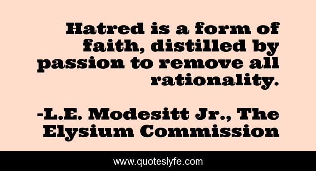 "L.E. Modesitt Jr., The Elysium Commission Quotes." Quoteslyfe.com, 2025. Fri. 05 Dec. 2025. <https://www.quoteslyfe.com/quote/Hatred-is-a-form-of-faith-distilled-8389>.