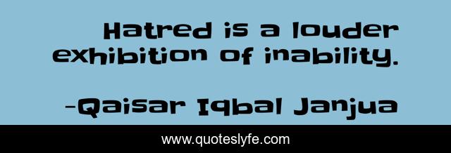 "Qaisar Iqbal Janjua Quotes." Quoteslyfe.com, 2025. Fri. 05 Dec. 2025. <https://www.quoteslyfe.com/quote/Hatred-is-a-louder-exhibition-of-inability-14194>.
