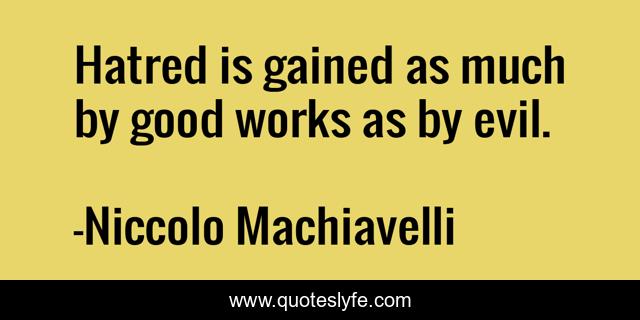 This page presents the quote "Hatred is gained as much by good works as by evil.". Author of this quote is Niccolo Machiavelli. This quote is about hatred, works, evil,.