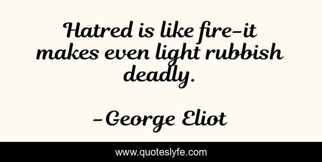 This page presents the quote "Hatred is like fire-it makes even light rubbish deadly.". Author of this quote is George Eliot. .