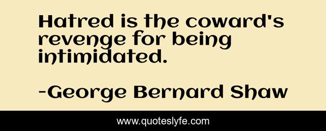 This page presents the quote "Hatred is the coward's revenge for being intimidated.". Author of this quote is George Bernard Shaw. This quote is about cowardice, hatred,.