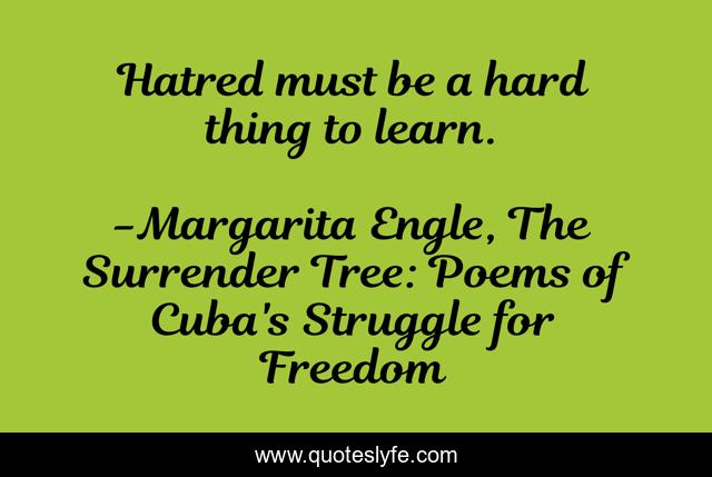 "Margarita Engle, The Surrender Tree: Poems of Cuba's Struggle for Freedom Quotes." Quoteslyfe.com, 2025. Fri. 05 Dec. 2025. <https://www.quoteslyfe.com/quote/Hatred-must-be-a-hard-thing-to-163656>.