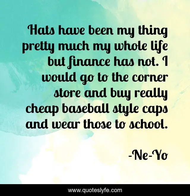 This page presents the quote "Hats have been my thing pretty much my whole life but finance has not. I would go to the corner store and buy really cheap baseball style caps and wear those to school.". Author of this quote is Ne-Yo. This quote is about life, baseball, school,.