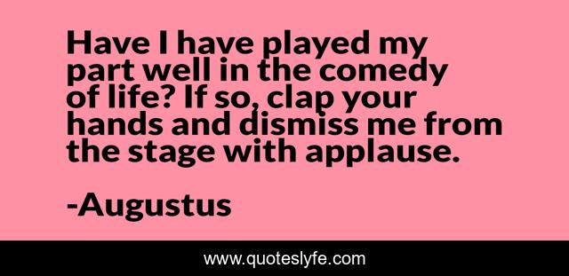 This page presents the quote "Have I have played my part well in the comedy of life? If so, clap your hands and dismiss me from the stage with applause.". Author of this quote is Augustus. This quote is about emperor, ancient-rome, deathbed, roman, history,.