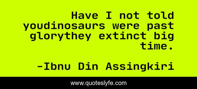 "Ibnu Din Assingkiri Quotes." Quoteslyfe.com, 2025. Fri. 05 Dec. 2025. <https://www.quoteslyfe.com/quote/Have-I-not-told-youdinosaurs-were-past-212837>.