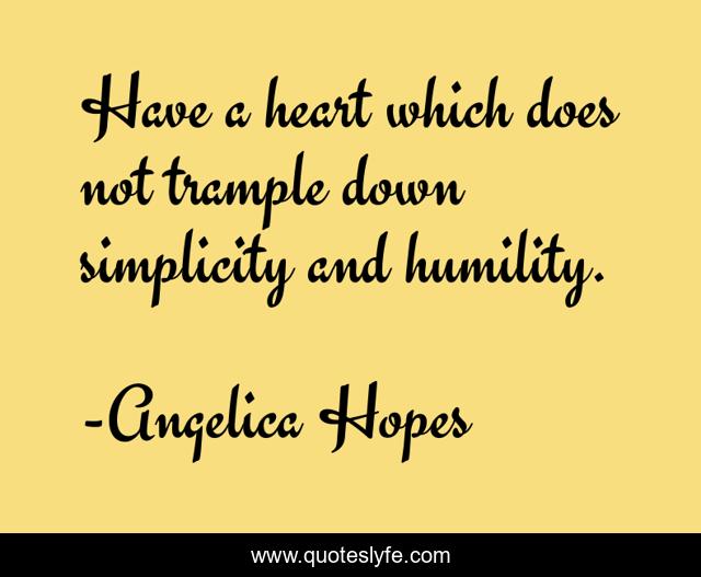 This page presents the quote "Have a heart which does not trample down simplicity and humility.". Author of this quote is Angelica Hopes. This quote is about simplicity, whispers-of-a-soul, abuse, reflections, humility, respect, landscapes-of-a-heart,.