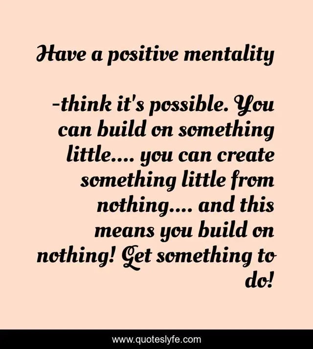 "think it's possible. You can build on something little.... you can create something little from nothing.... and this means you build on nothing! Get something to do! Quotes." Quoteslyfe.com, 2025. Mon. 08 Dec. 2025. <https://www.quoteslyfe.com/quote/Have-a-positive-mentality-95459>.