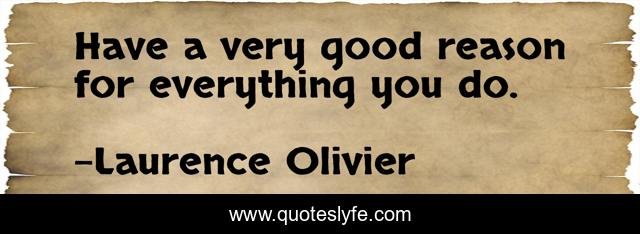 This page presents the quote "Have a very good reason for everything you do.". Author of this quote is Laurence Olivier. This quote is about everything, reason,.