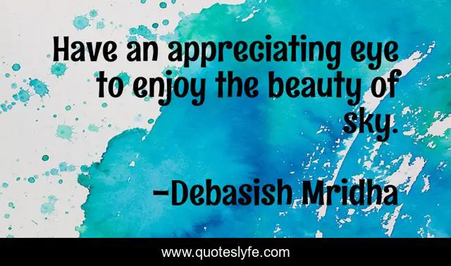 This page presents the quote "Have an appreciating eye to enjoy the beauty of sky.". Author of this quote is Debasish Mridha. This quote is about enjoy, life, appreciating, love, knowledge, beauty, inspirational, intelligence, philosophy,.