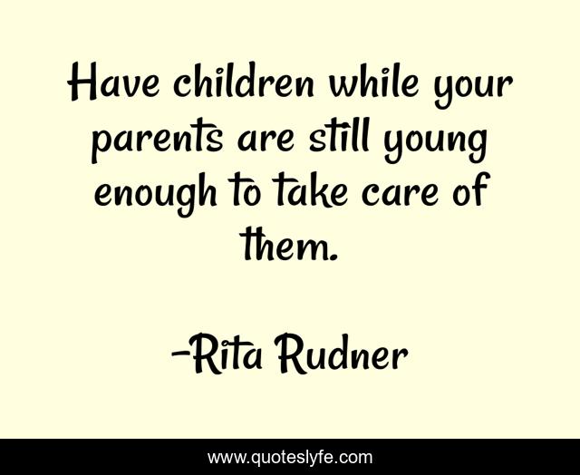 This page presents the quote "Have children while your parents are still young enough to take care of them.". Author of this quote is Rita Rudner. .