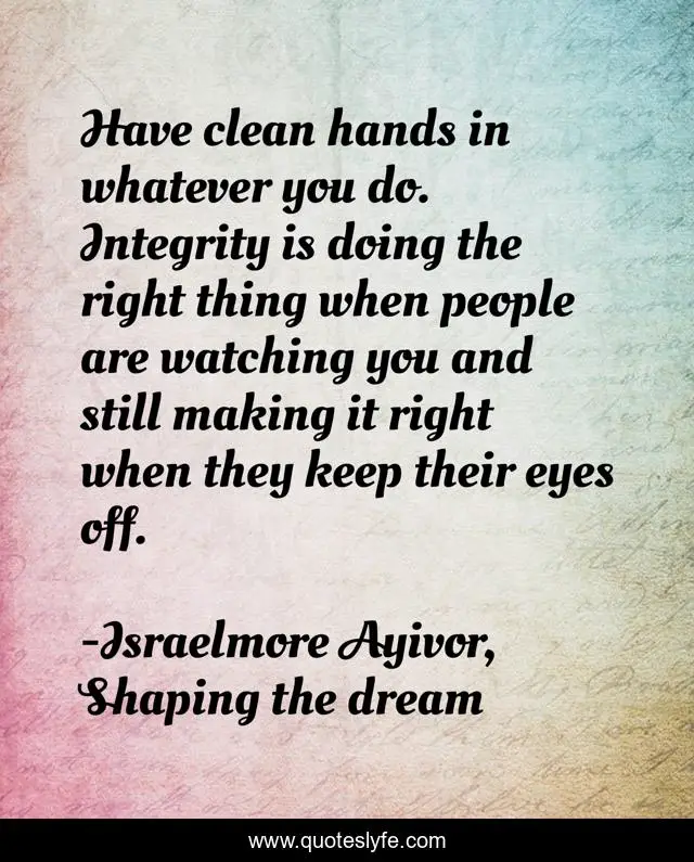 "Israelmore Ayivor, Shaping the dream Quotes." Quoteslyfe.com, 2025. Sat. 06 Dec. 2025. <https://www.quoteslyfe.com/quote/Have-clean-hands-in-whatever-you-do-129577>.