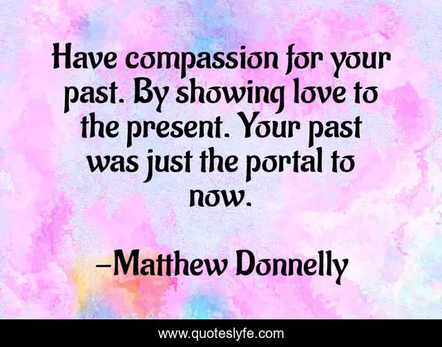 This page presents the quote "Have compassion for your past. By showing love to the present. Your past was just the portal to now.". Author of this quote is Matthew Donnelly. This quote is about compassion, past, now, present,.