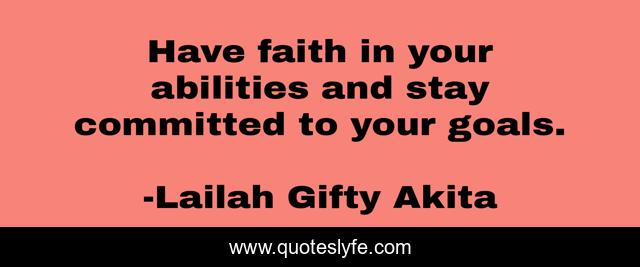 This page presents the quote "Have faith in your abilities and stay committed to your goals.". Author of this quote is Lailah Gifty Akita. This quote is about faith, abilities, faithfulness, ability, goals-in-life, stay-determined, focus, goals-priorities, ability-and-attitude,.