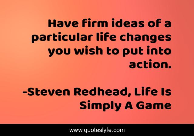 This page presents the quote "Have firm ideas of a particular life changes you wish to put into action.". Author of this quote is Steven Redhead, Life Is Simply A Game. This quote is about action, life-lesson, changes-in-life, life-philosophy,.