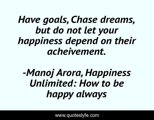 "Manoj Arora, Happiness Unlimited: How to be happy always Quotes." Quoteslyfe.com, 2025. Fri. 05 Dec. 2025. <https://www.quoteslyfe.com/quote/Have-goals-Chase-dreams-but-do-not-141218>.
