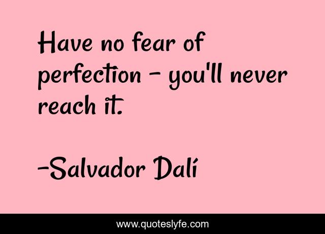 This page presents the quote "Have no fear of perfection - you'll never reach it.". Author of this quote is Salvador Dalí. This quote is about success, imperfection, failure, mistakes, perfection, fear,.