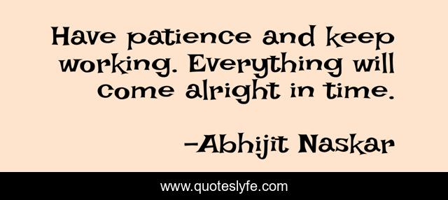 "Abhijit Naskar Quotes." Quoteslyfe.com, 2025. Sat. 06 Dec. 2025. <https://www.quoteslyfe.com/quote/Have-patience-and-keep-working-Everything-will-64495>.