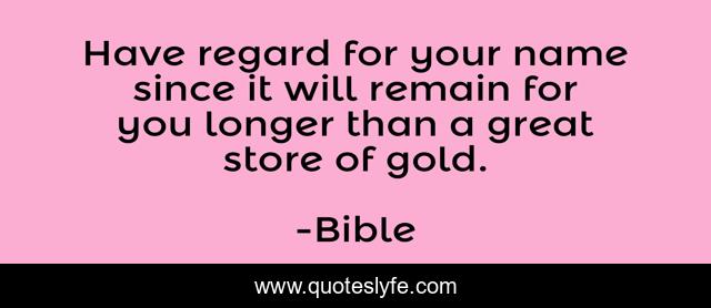 This page presents the quote "Have regard for your name since it will remain for you longer than a great store of gold.". Author of this quote is Bible. This quote is about celebrities, fame,.