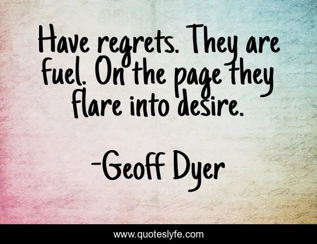 This page presents the quote "Have regrets. They are fuel. On the page they flare into desire.". Author of this quote is Geoff Dyer. .