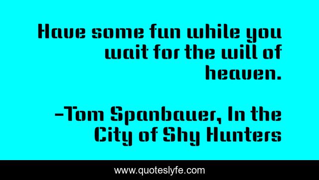 This page presents the quote "Have some fun while you wait for the will of heaven.". Author of this quote is Tom Spanbauer, In the City of Shy Hunters. .