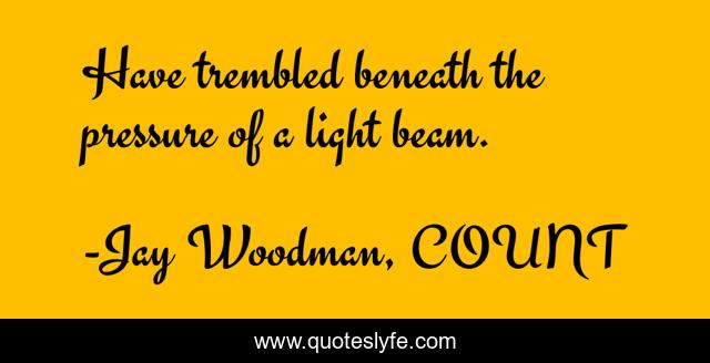 This page presents the quote "Have trembled beneath the pressure of a light beam.". Author of this quote is Jay Woodman, COUNT. This quote is about prose-poem, light, prose-poetry,.