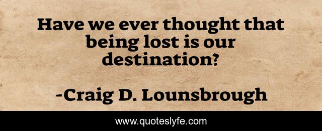 This page presents the quote "Have we ever thought that being lost is our destination?". Author of this quote is Craig D. Lounsbrough. This quote is about flee, deny, denial, hide, goal, lost, fearful, intentional, avoid,.