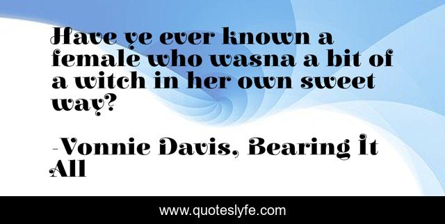 This page presents the quote "Have ye ever known a female who wasna a bit of a witch in her own sweet way?". Author of this quote is Vonnie Davis, Bearing It All. This quote is about comedy-romance, paranormal-romance, shifter-romance, scottish-romance,.