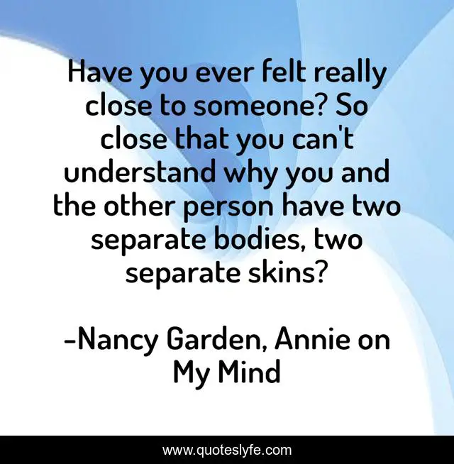 "Nancy Garden, Annie on My Mind Quotes." Quoteslyfe.com, 2025. Mon. 08 Dec. 2025. <https://www.quoteslyfe.com/quote/Have-you-ever-felt-really-close-to-126561>.