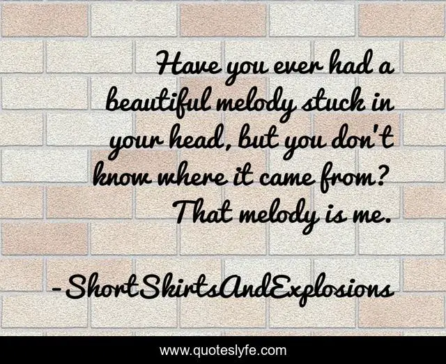 This page presents the quote "Have you ever had a beautiful melody stuck in your head, but you don't know where it came from? That melody is me.". Author of this quote is ShortSkirtsAndExplosions. .