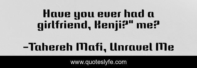 "Tahereh Mafi, Unravel Me Quotes." Quoteslyfe.com, 2025. Fri. 05 Dec. 2025. <https://www.quoteslyfe.com/quote/Have-you-ever-had-a-girlfriend-Kenji-5798>.