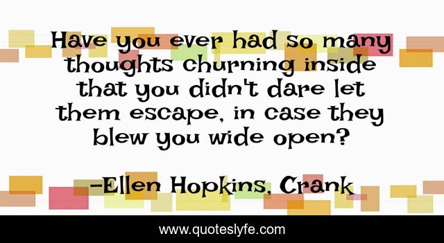 This page presents the quote "Have you ever had so many thoughts churning inside that you didn't dare let them escape, in case they blew you wide open?". Author of this quote is Ellen Hopkins, Crank. .