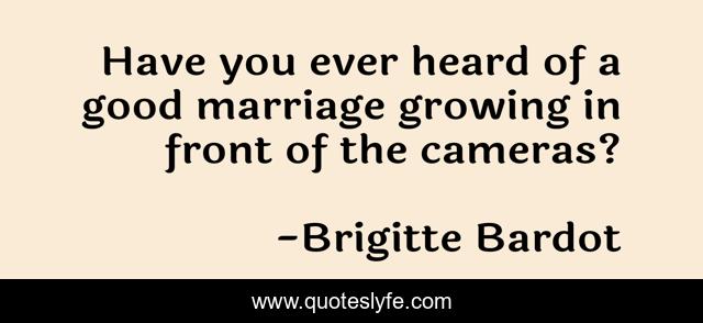 This page presents the quote "Have you ever heard of a good marriage growing in front of the cameras?". Author of this quote is Brigitte Bardot. This quote is about growing, good,.