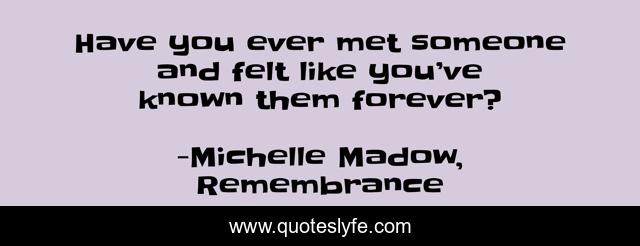 This page presents the quote "Have you ever met someone and felt like you’ve known them forever?". Author of this quote is Michelle Madow, Remembrance. This quote is about past-lives, reincarnation, long-lost-love, true-love,.