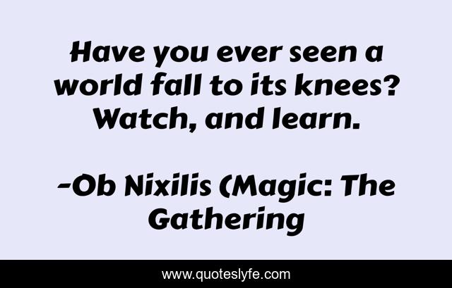 This page presents the quote "Have you ever seen a world fall to its knees? Watch, and learn.". Author of this quote is Ob Nixilis (Magic: The Gathering. This quote is about fantasy, board-games, mtg,.