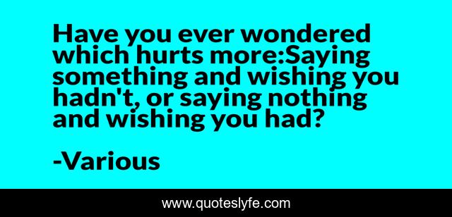 This page presents the quote "Have you ever wondered which hurts more:Saying something and wishing you hadn't, or saying nothing and wishing you had?". Author of this quote is Various. .