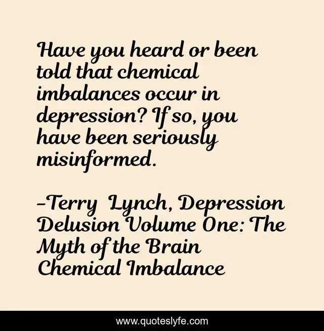 "Terry Lynch, Depression Delusion Volume One: The Myth of the Brain Chemical Imbalance Quotes." Quoteslyfe.com, 2025. Mon. 08 Dec. 2025. <https://www.quoteslyfe.com/quote/Have-you-heard-or-been-told-that-114004>.