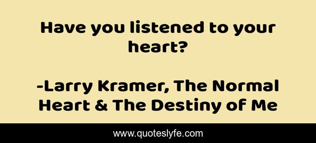 This page presents the quote "Have you listened to your heart?". Author of this quote is Larry Kramer, The Normal Heart & The Destiny of Me. This quote is about heart, listened,.