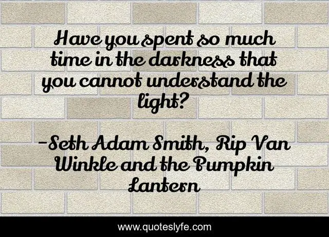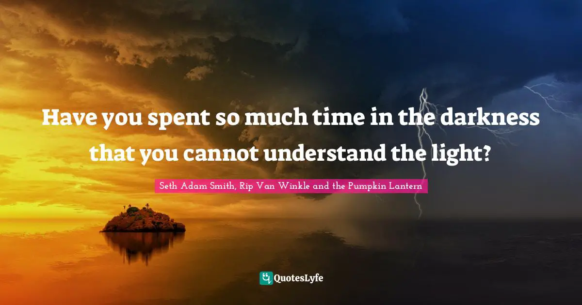This page presents the quote "Have you spent so much time in the darkness that you cannot understand the light?". Author of this quote is Seth Adam Smith, Rip Van Winkle and the Pumpkin Lantern. This quote is about light, power-of-light, power-of-darkness, darkness, light-and-darkness,.