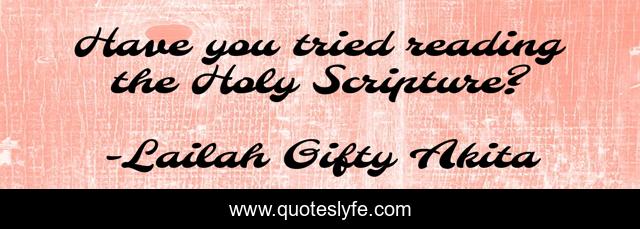 This page presents the quote "Have you tried reading the Holy Scripture?". Author of this quote is Lailah Gifty Akita. This quote is about christian, inspiring, reading, scripture,.