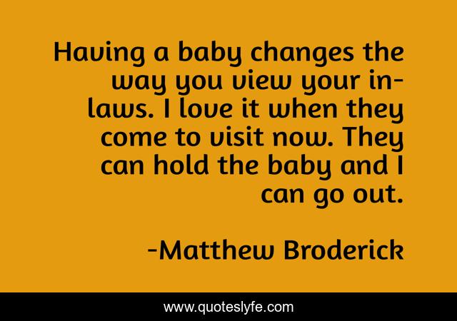 This page presents the quote "Having a baby changes the way you view your in-laws. I love it when they come to visit now. They can hold the baby and I can go out.". Author of this quote is Matthew Broderick. This quote is about baby, love, changes, affection,.
