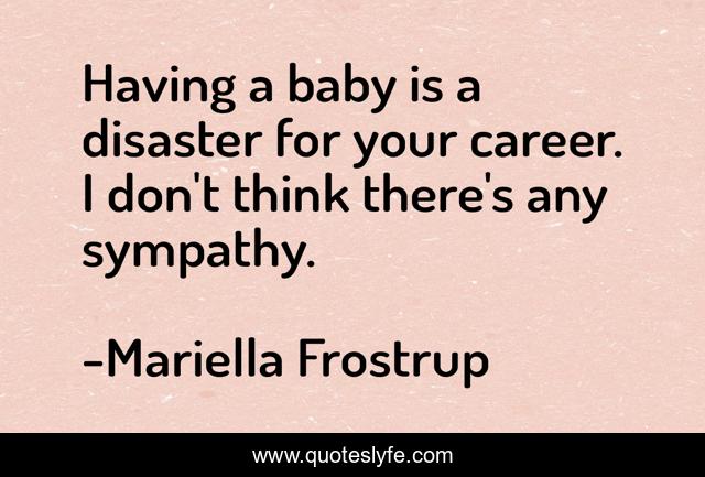 This page presents the quote "Having a baby is a disaster for your career. I don't think there's any sympathy.". Author of this quote is Mariella Frostrup. This quote is about baby, career, think,.