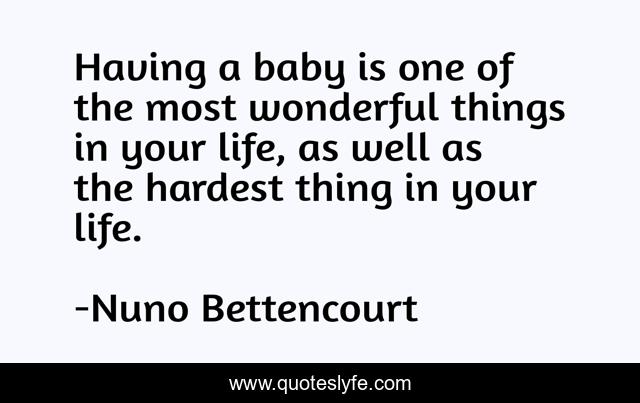This page presents the quote "Having a baby is one of the most wonderful things in your life, as well as the hardest thing in your life.". Author of this quote is Nuno Bettencourt. This quote is about baby, having a baby,.